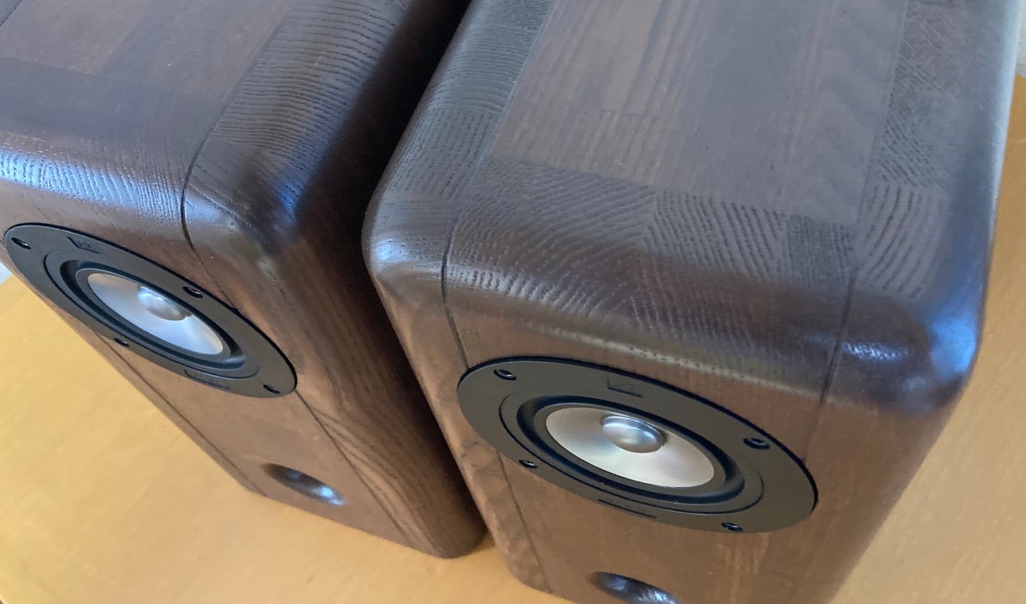 このA130siは白タモ材(ホワイトアッシュ材)をバッフル・天板・背板・底板に35ミリ厚を、両側板に30ミリ厚を使用して組み上げた強靭なキャビネットです。バッフル下部1/3は厚み100mm.ほどもあり、天然の広葉樹による強靭さでキャビネットの箱なりを徹底的に抑えています。